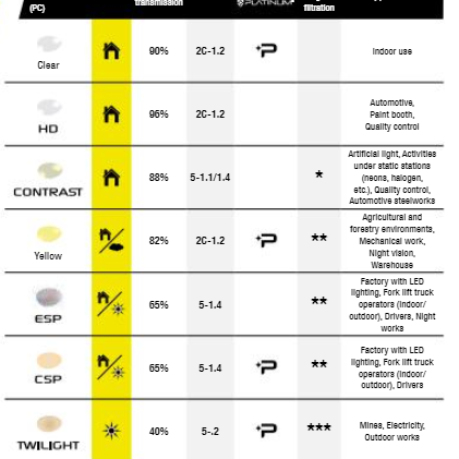 Munkaterülettől függően választhatunk teljesen átlátszó, sárga, illetve sötétített lencséjű védőszemüvegek közül, aminek már csak az „uhhh, ez de jól néz ki!”, vagyis ízlésünk szabhat határt.