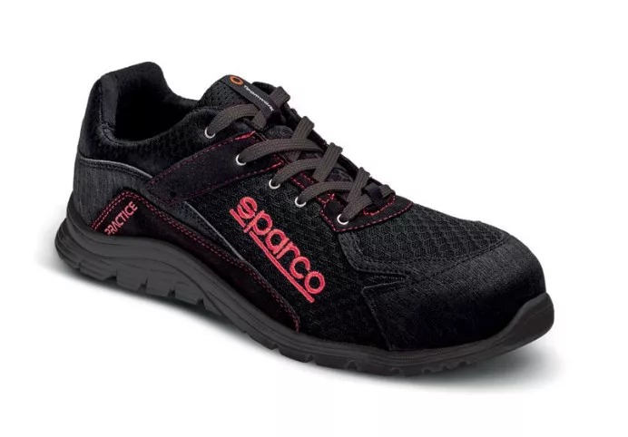 A Sparco Practice nem egy nehéz, robusztus cipő – hanem egy sportcipő jellegű, könnyített munkavédelmi lábbeli, amelynek minden eleme a kényelemre és szellőzésre van optimalizálva. A cipő anyaghasználata és kialakítása csökkenti a hőtartást.