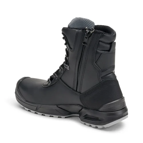 Fémmentes, magas szárú munkavédelmi bakancs vízlepergető bőrből és technikai textilből, kompozit orrmerevítővel és átszúrásbiztos talplemezzel, hideg elleni szigeteléssel, csúszásmentes és antisztatikus talppal.