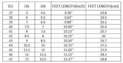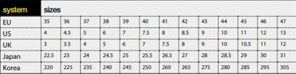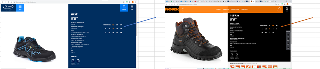 Lavoro és NoRisk munkavédelmi lábbeli mérettáblázat: