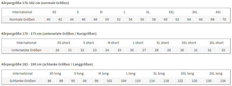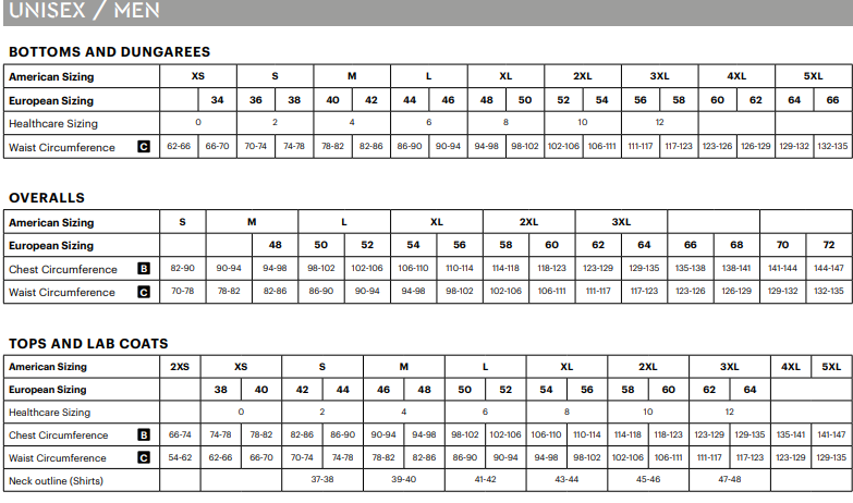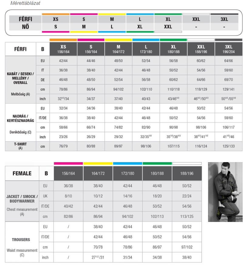Férfi munkaruha méretek: