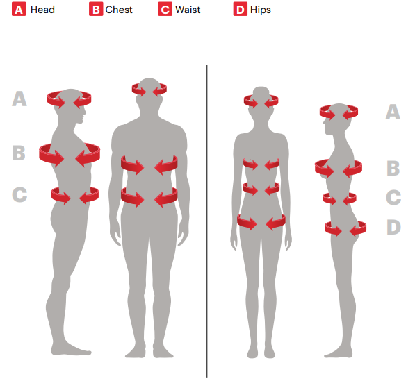 A mérettáblázatok nem a termékek, hanem az emberi test méretei alapján készültek!