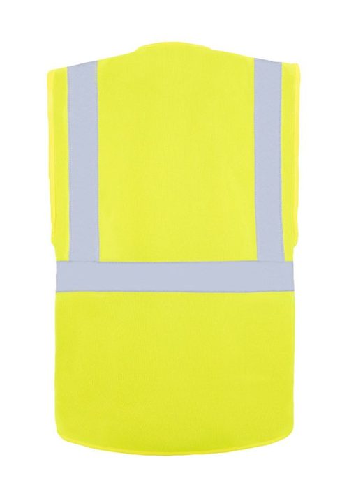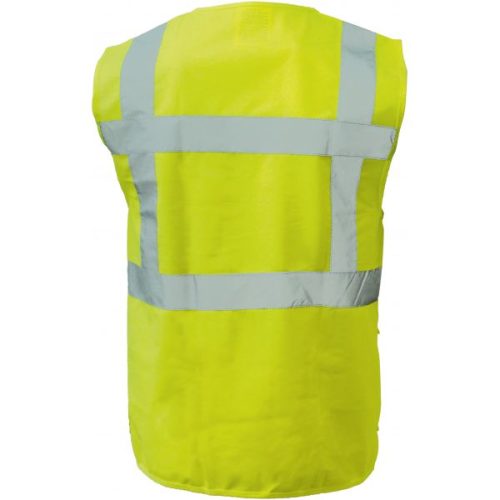 Jól láthatósági munkaruha: jelzősárga mellény kettő 5 cm-es fényvisszaverő csíkkal a jobb láthatóság érdekében.