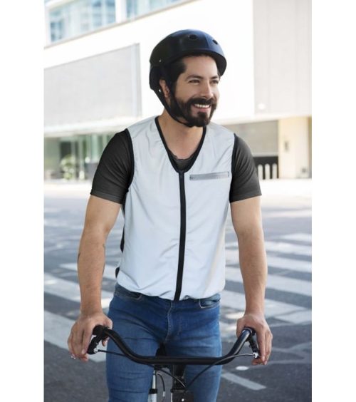 Elöl cipzár Fényvisszaverő szalag a törzsön és a vállakon Táska is tartozik hozzá
