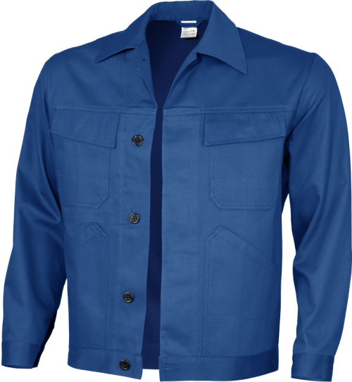 Gallér. Rejtett első gombsor. 1 felvarrt mellzseb ráhajtható gombos zsebfedővel a bal oldalon. 1 felvarrt mellzseb, tépőzárral, a jobb oldalon megosztott zseb tollaknak és mobiltelefonnak. 1 Belső zseb a jobb oldalon. 2 felvarrt, megerősített oldalzseb. Kék.