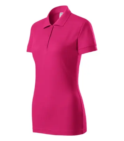 Női magas grammsúlyú galléros póló. Bevágással az oldalvarrásokon. Karcsúsított női szabás. Gallér és az ujjszegélyek 1x1 bordás kötéssel. Gombolópánt 5 gombbal. Anyag színével megegyező gombbal. Hímzésre alkalmas.