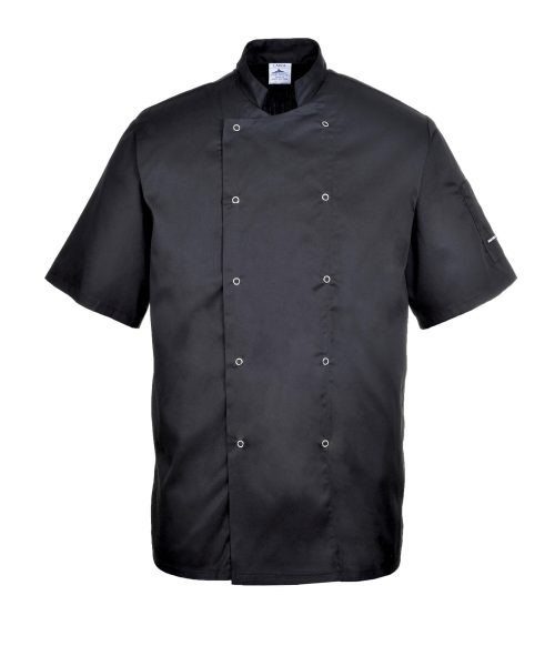 Meleg munkakörnyezetre tervezett új, rövid ujjú séfkabát. Klasszikus szabás, magas minőségű, könnyen kezelhető alapanyag. Fekete. Készlethiány! aktuális elérhetőségről érdeklődjön emailben vagy telefonon ! Más gyártótól hasonló termékeink elérhetőek!