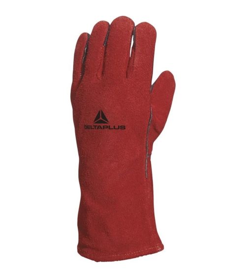 Védőkesztyű hegesztők számára.  Hőálló réteggel bevont hasíték bőr. Vastagság 1,2 és 1,4 mm között. Szín piros, méret:10.