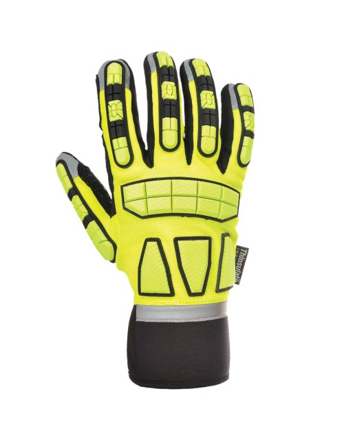 Kimagasló védelmet biztosító , multifunkciós kesztyű, egyedi, ütődés elleni védőbetétekkel. Ellenáll az olajoknak és a víznek. Termál bélelt és bélés nélküli változatlan készül. Fluo sárga.