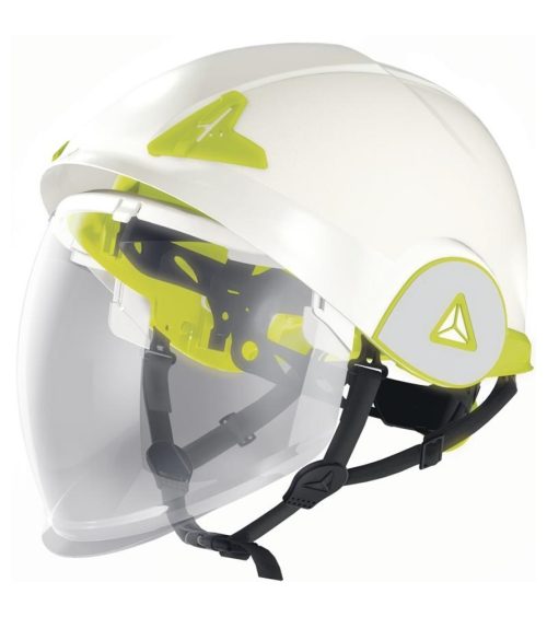 Kompakt és kombinált megoldás: ABS kétrétegű biztonsági sisak behúzható PC látómezővel. Szemüveggel is használható. Modern kivitelezés, amelyet a sport világa ihletett, és amely kettős védelmet nyújt nehéz munkakörnyezetben és elektromos kockázatokkal szemben, elérhető áron, minden felhasználónak.