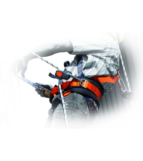 Vezérelt zuhanásgátló tartószerkezeten fonott kötél ø 10,5 mm - A kötélen blokkoló - AM002-es karabinerrel ellátott kötélfeszítő. A zuhanásgátló eszköz a biztosító tartószerkezeten mozog, és leesésnél automatikusan blokkol, megállítja a használó esését. A kötél beállítására szolgáló eszköz a biztonsági tartószerkezeten van használva (A típus), kíséri használóját pozíció változtatásai közben, és blokkol statikus vagy dinamikus teher működése alatt.