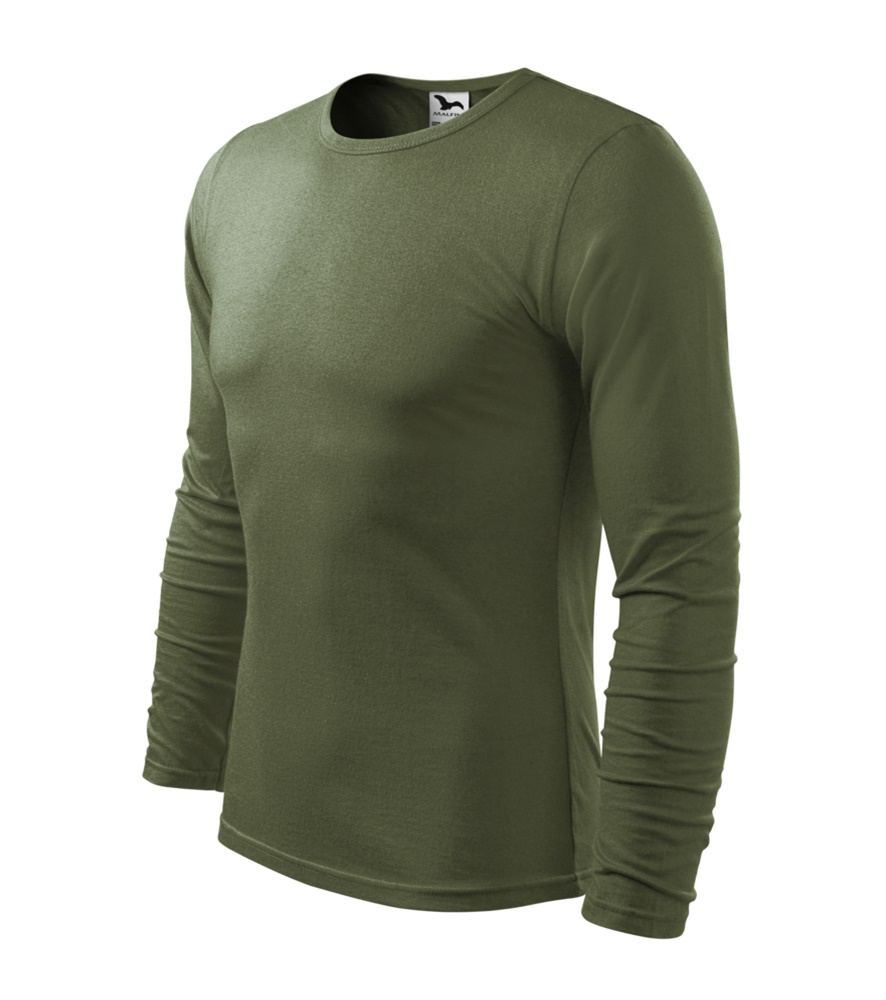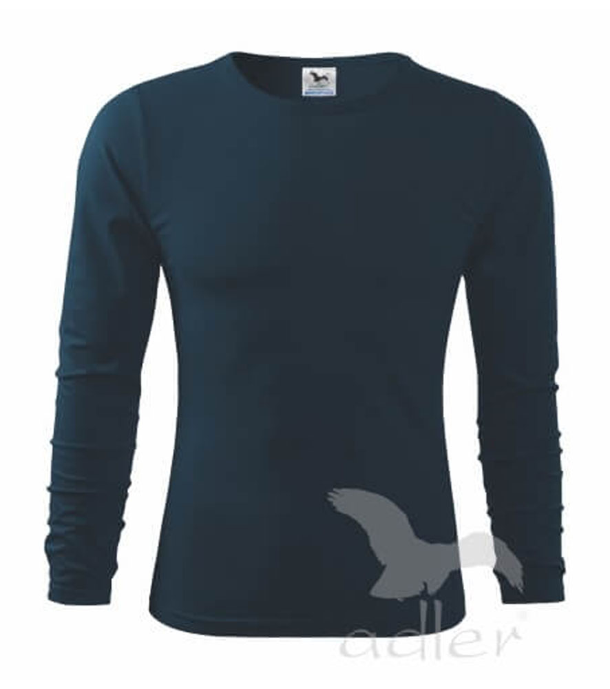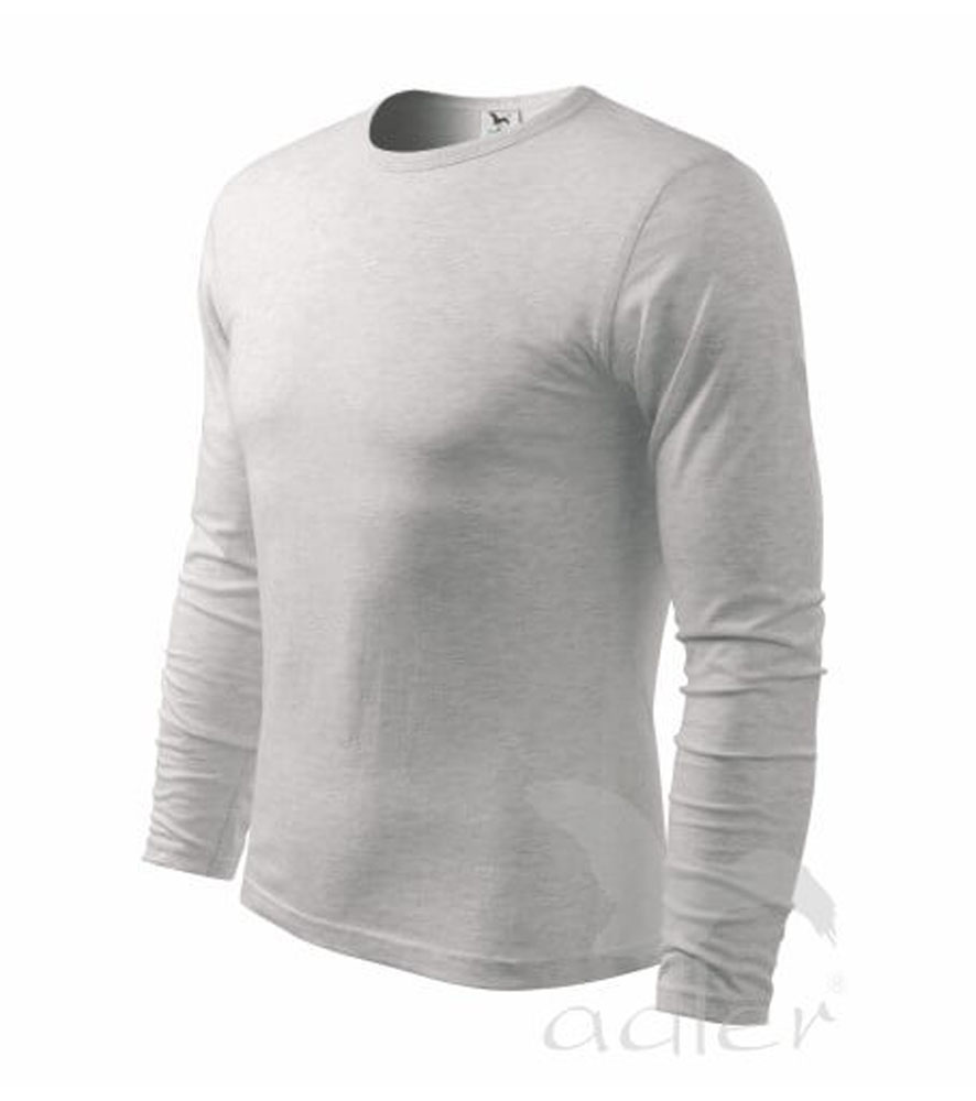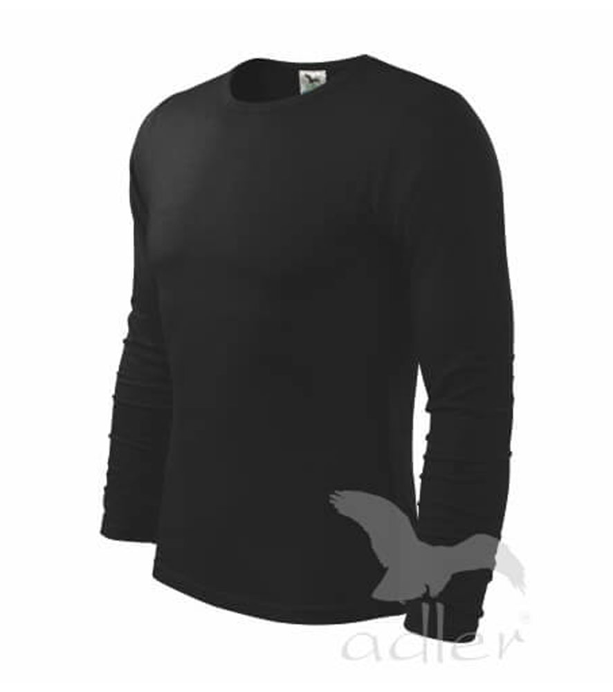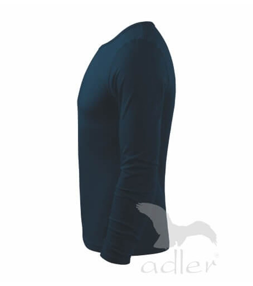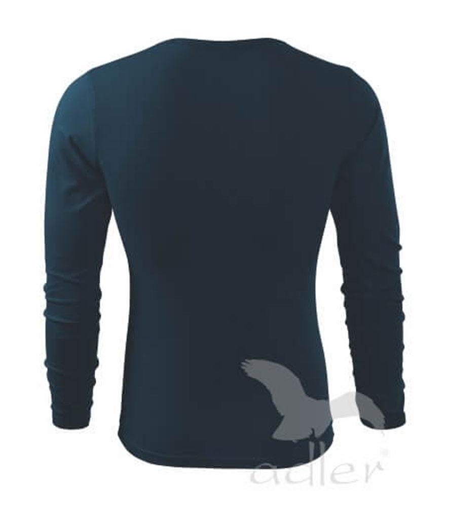 Jó minőségű testhez simuló férfi póló, hosszú ujjú, sima kötött kelméből. A pólóval azonos színű divatos vékony nyakszegély . Szűkebb fazon.