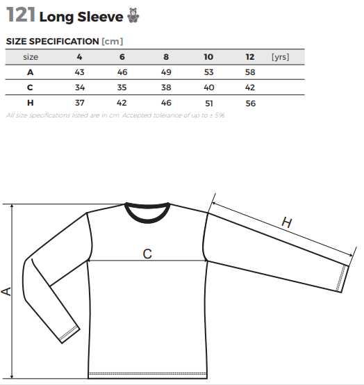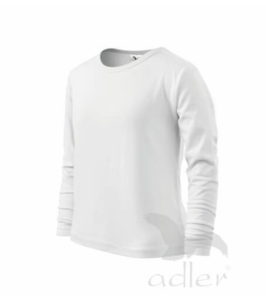 Sima kötött anyagból készült, hosszú ujjú gyerek póló. Keskeny szegély a póló színében. Nyomásra és hímzésre alkalmas.