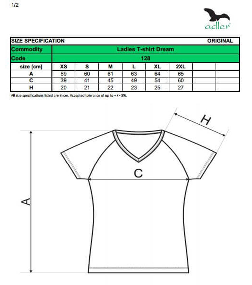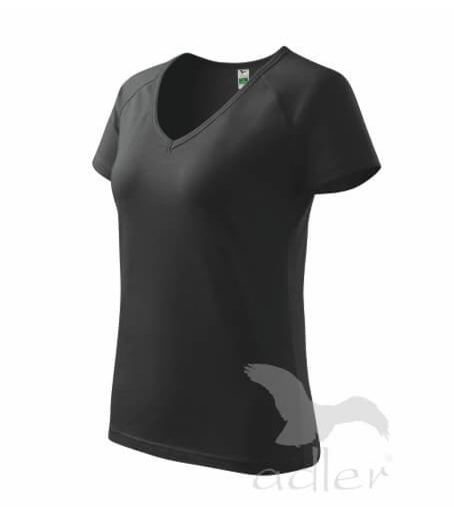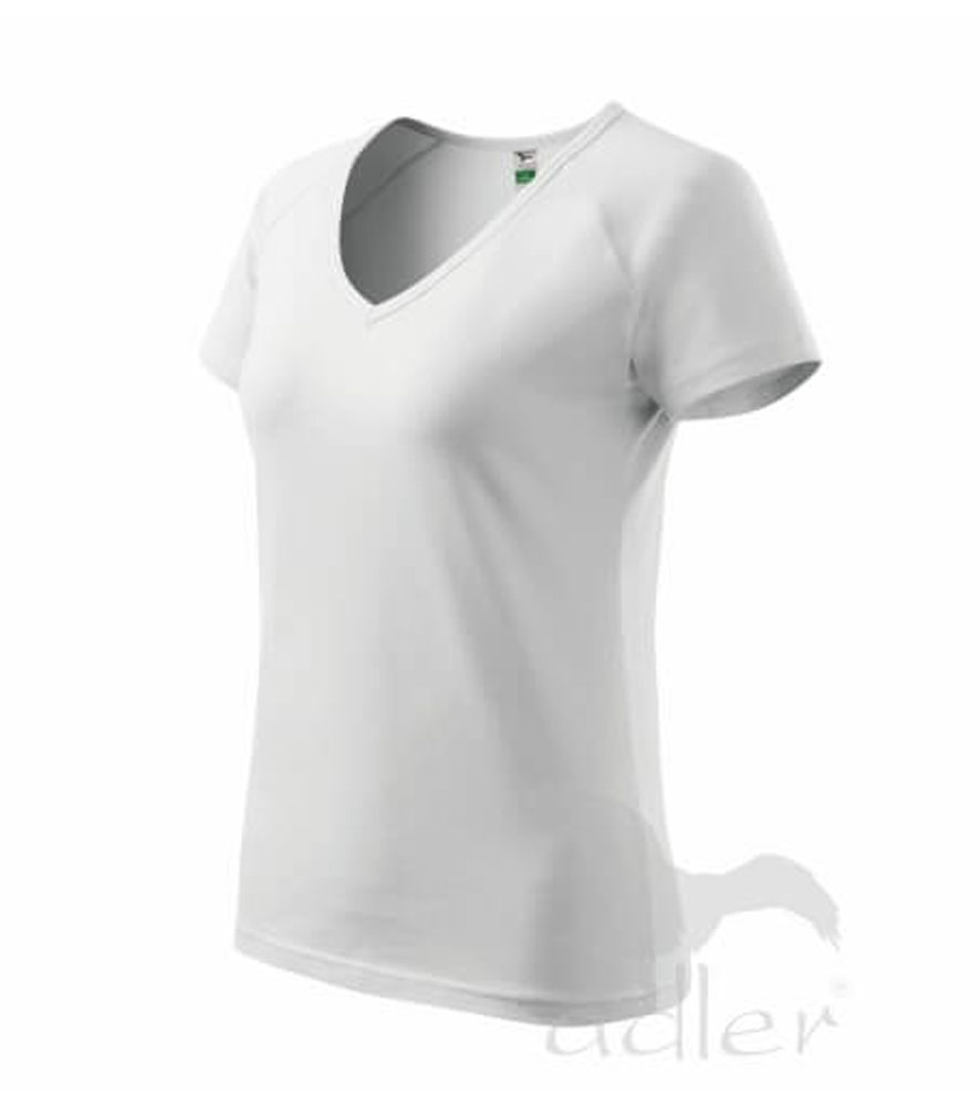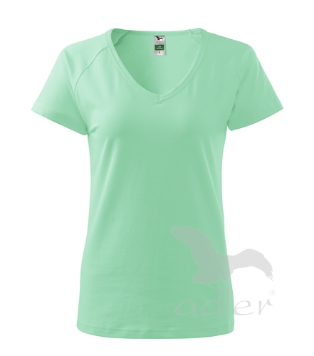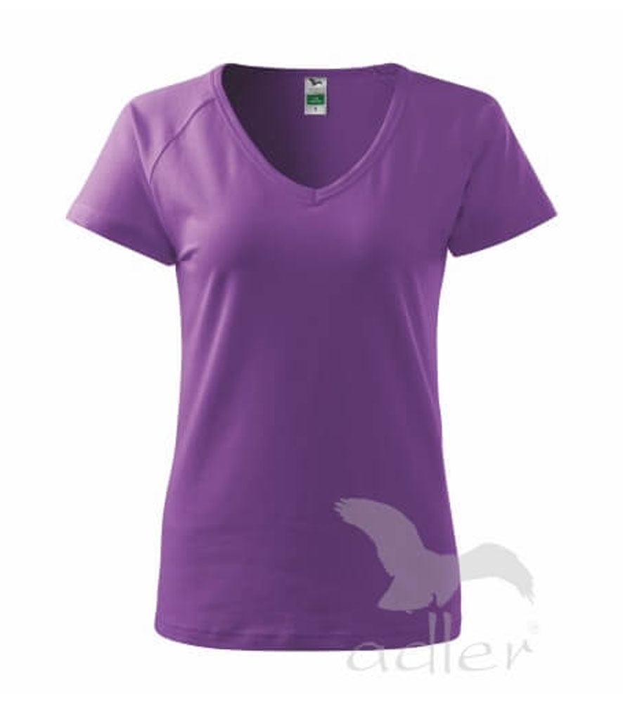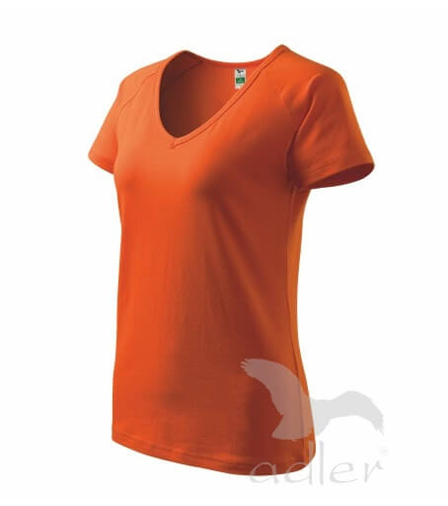 Magas grammsúlyú minőségi női póló. V-alakú nyakkivágás. A nőies vonalakat hangsúlyozó csinos szabás.Nyomásra és hímzésre alkalmas.
