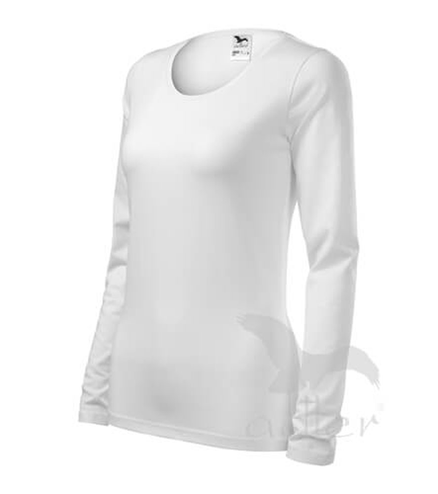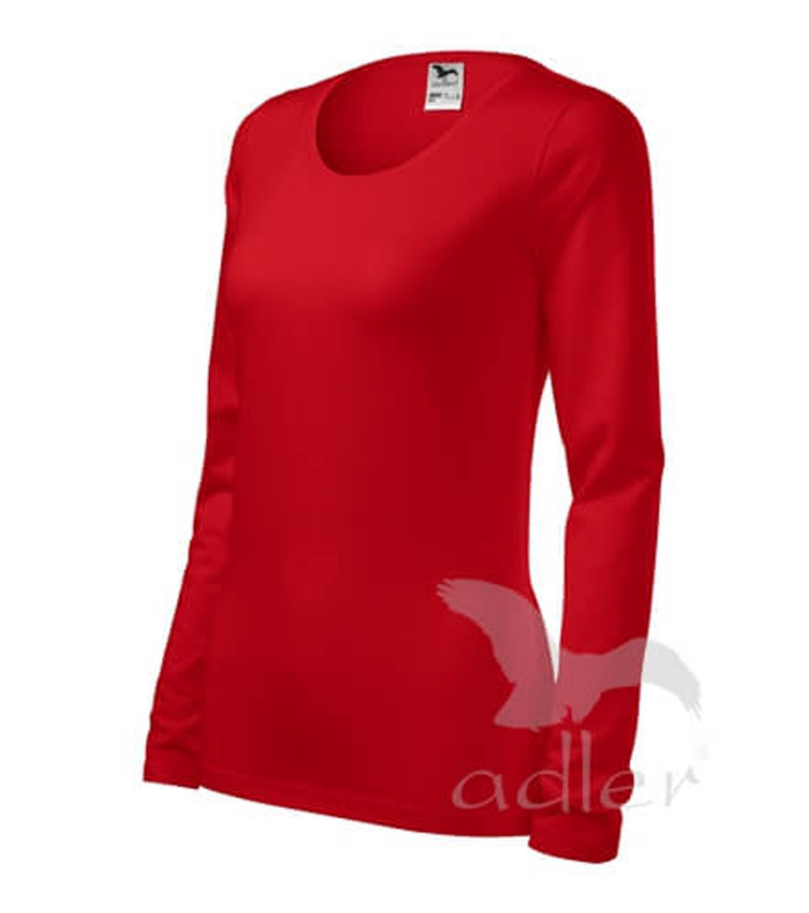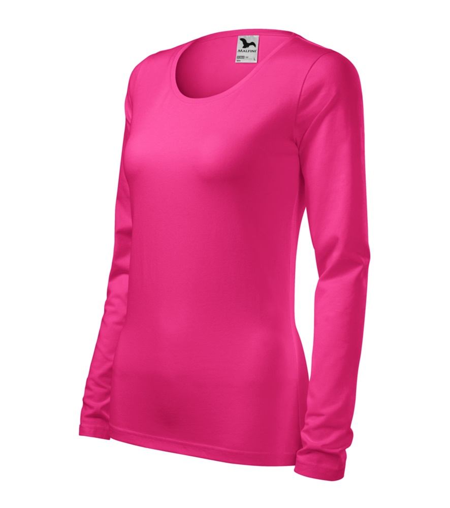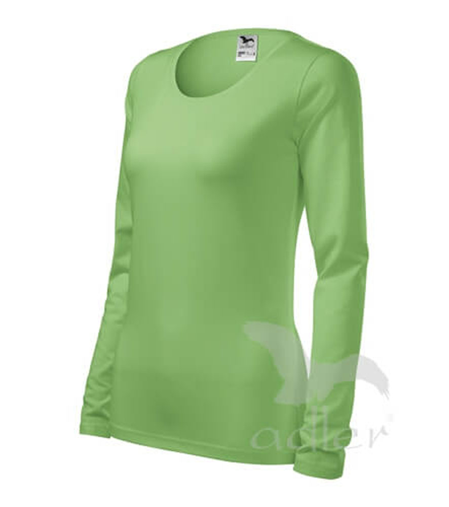 Magas grammsúlyú női hosszujjú póló. Kényelmes anyagú elasztánnal a jobb formáért. Karcsúsított nőies szabás, oldalvarrásokkal.