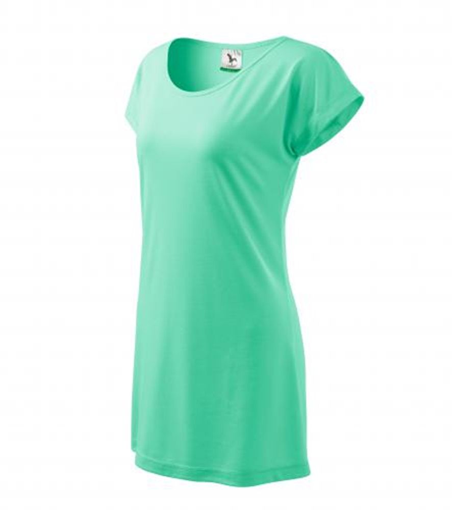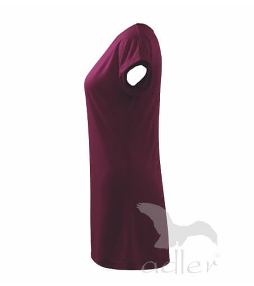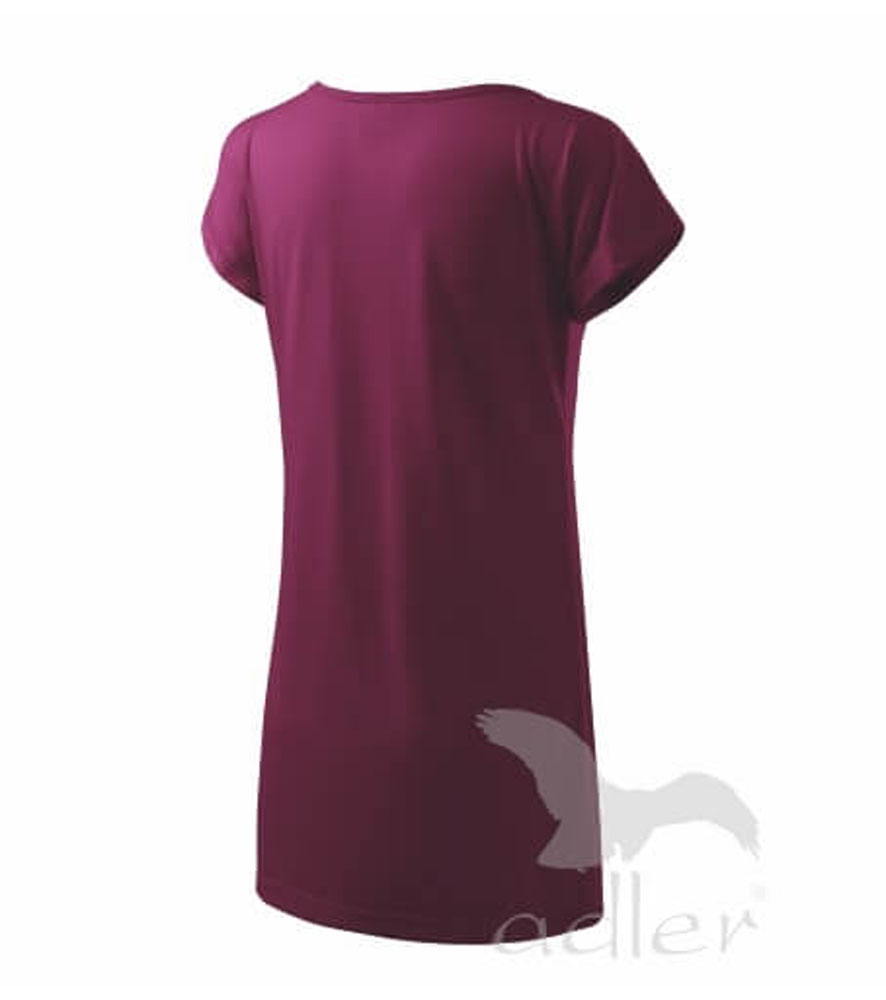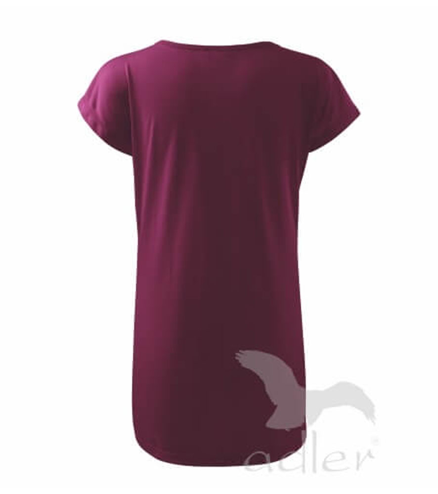Testre simuló női póló. Lezser szabás, kimonó ujjal. Ovális nyakkivágás az alapanyagból készült szegéllyel. A póló hossza több viselési módot tesz lehetővé. A póló szárítását, vízszintes helyzetben ajánljuk, a felhasznált anyagból kifolyólag.