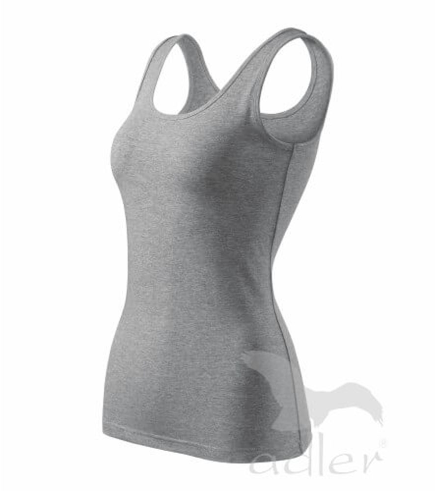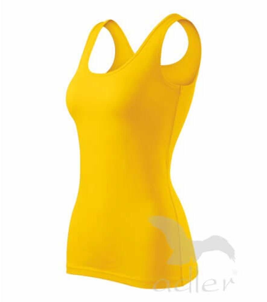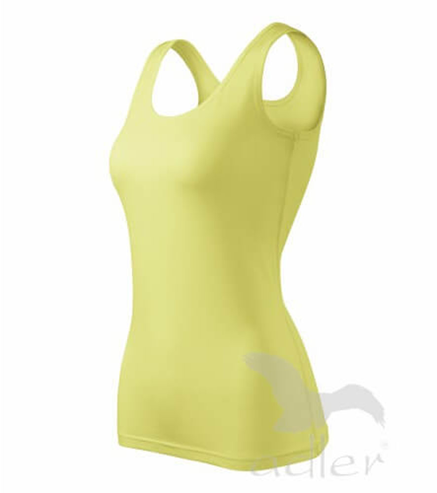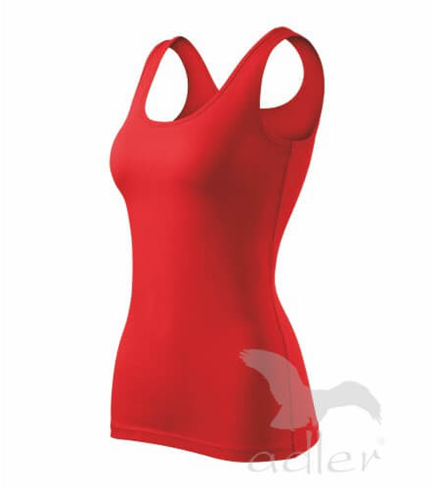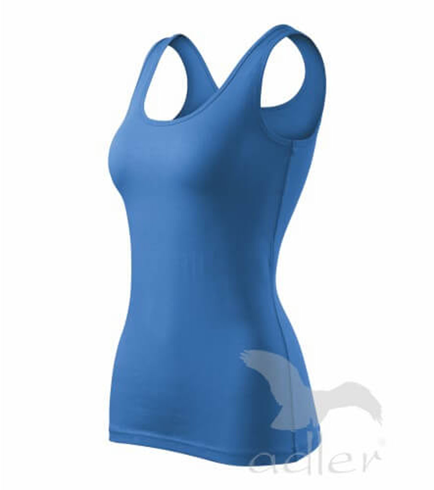 Szűk ujjatlan női felső, széles pántokkal. Megnövelt hosszúság. Kellemes anyag 5 % spandex adalékkal, ami biztosítja a póló alaktartását. Nyomásra és hímzésre alkalmas.