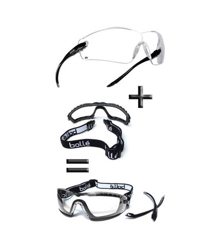 - 1 db habkeret + 1 db állítható gumis pánt (KITFSCOB), ami közvetlenül csatlakoztatható a szemüvegre(a szár helyére) /nagy méretre is állítható, hogy sisakra is föl lehessen rakni/ a szett csatlakoztatható bármelyik színű Bollé Cobra védőszemüvegre!