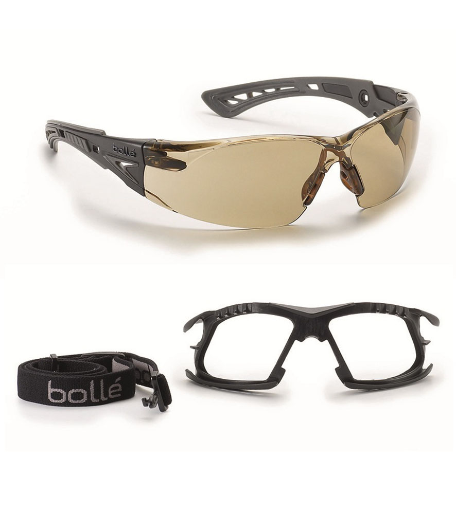 Bollé Rush+ védőszemüveg szett habkerettel és pánttal twilight-barna lencsével P+