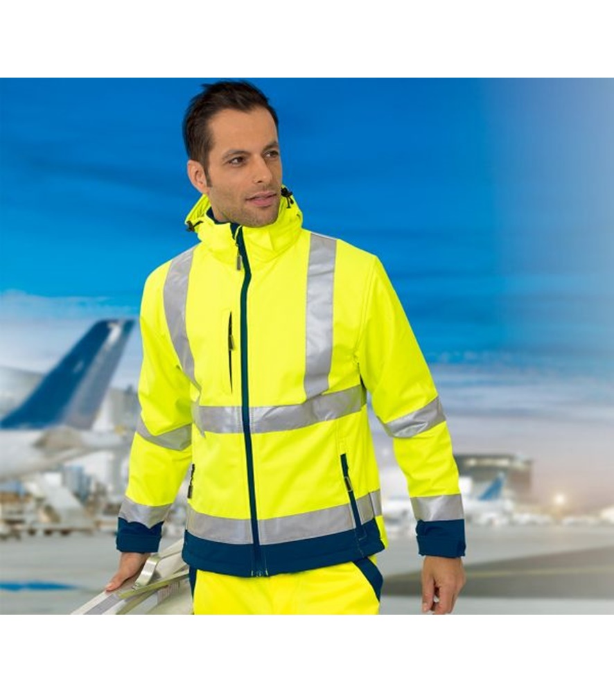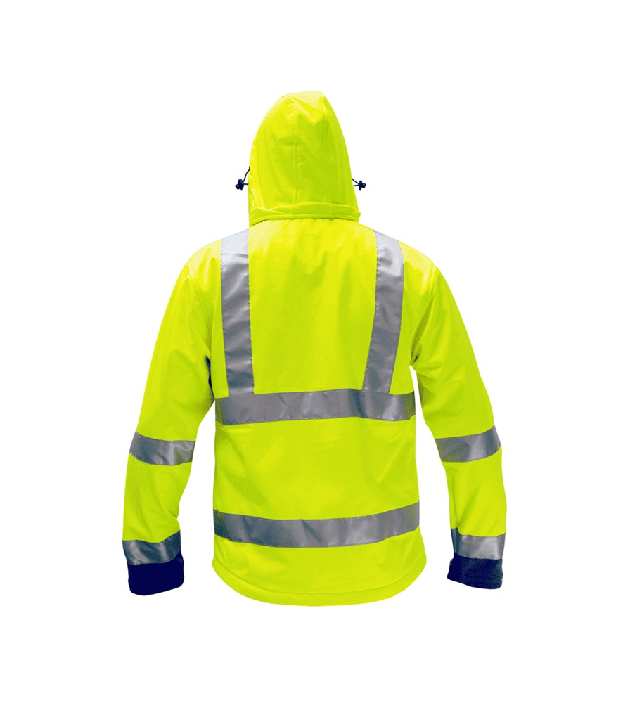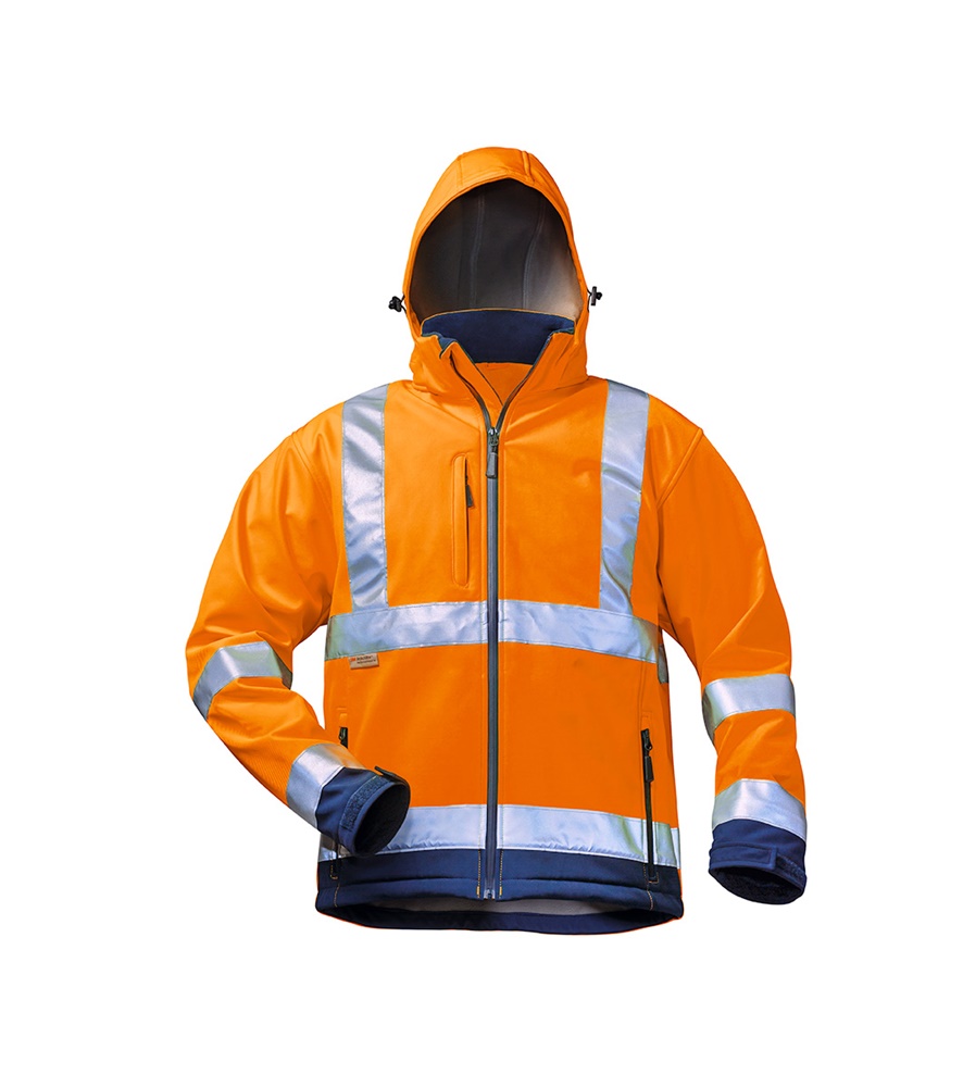 Szélálló, vízlepergető és lélegző jelző softshell kabát. EN ISO 20471 Class 3, EN 340.