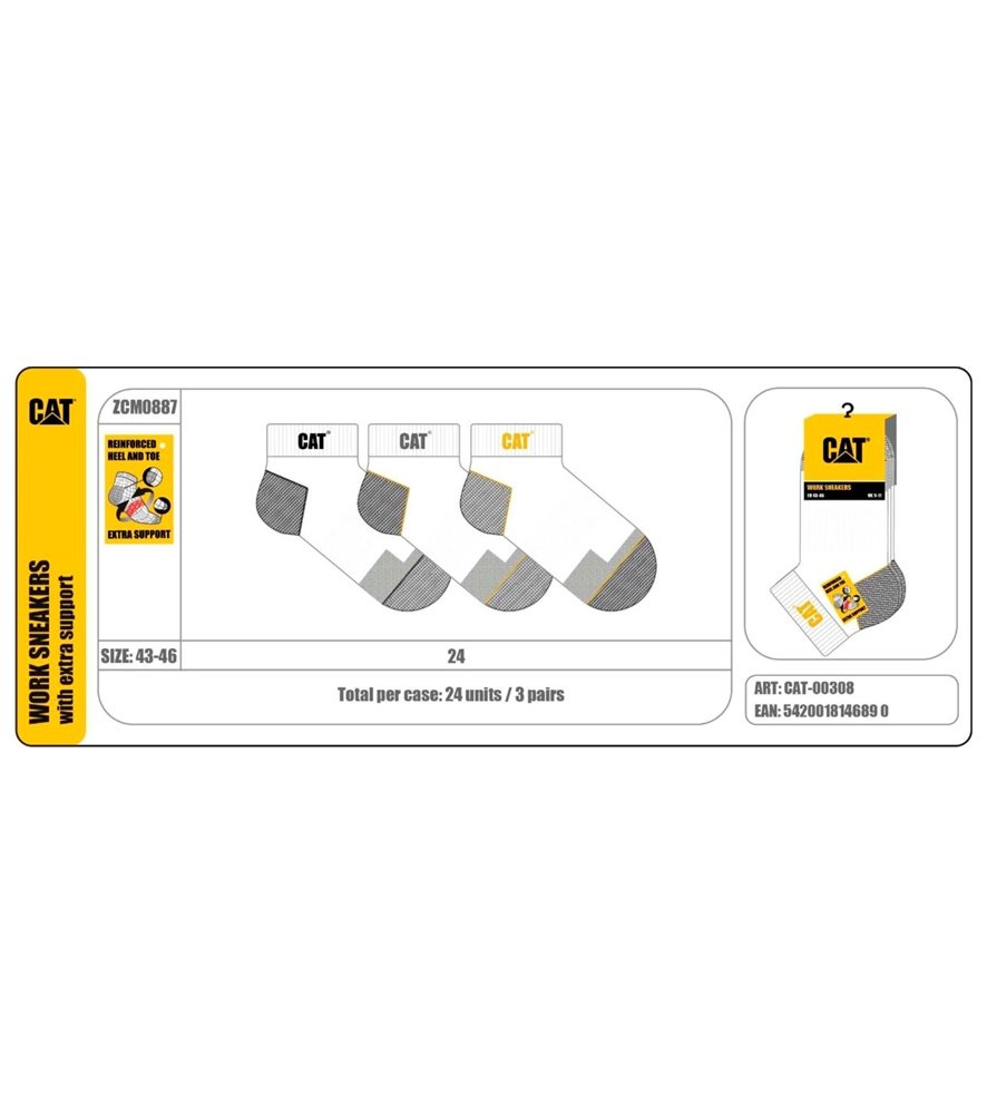 Caterpillar ZCM0887 fehér rövid munkazokni 3pár/csomag