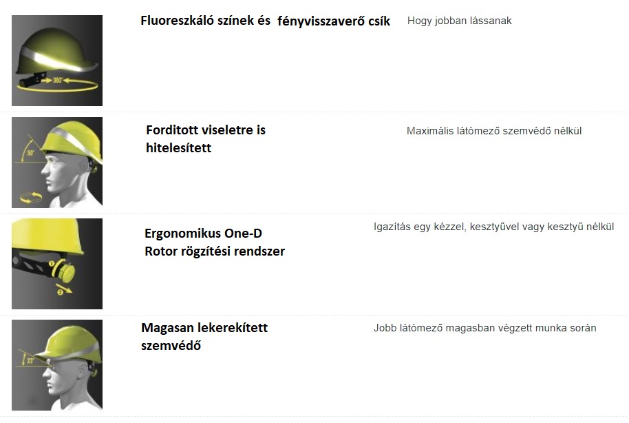 – Elektromosan szigetelt sisakok 1000 VAC vagy 1500 VDC (elektromos osztály 0) nem meghaladó feszültség alatt álló berendezéseken vagy azok közelében végzett használatra.