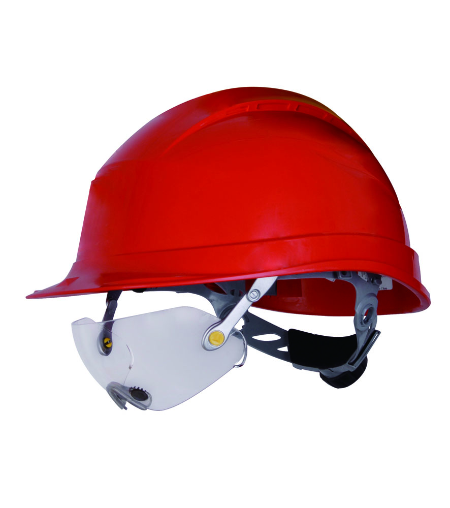 Víztiszta polikarbonát szemüveg kiegészítőként használható az ipari sisakhoz. Nagyon újító forma a maximális védelemért. Használat közben a sisakhéjba behajtható szakaszos használatnál.
