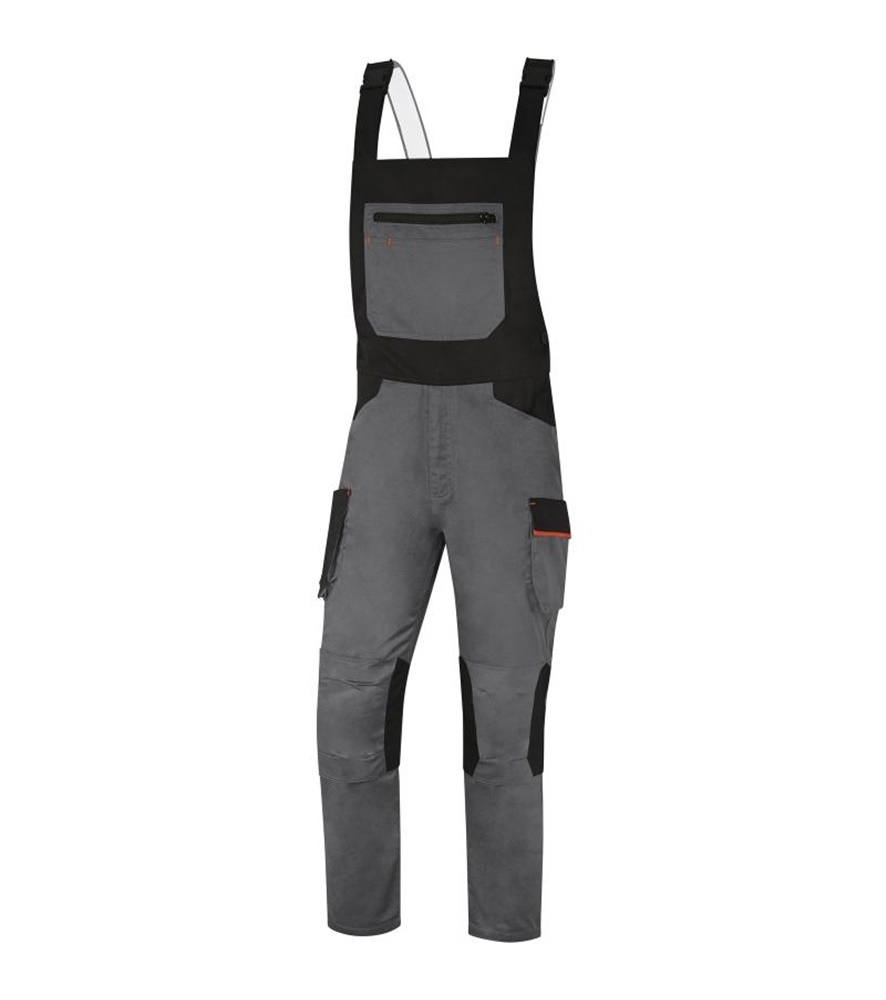 Kertésznadrág. Állítható elasztikus vállpántok. Formázott térdkialakítás. 10 zseb