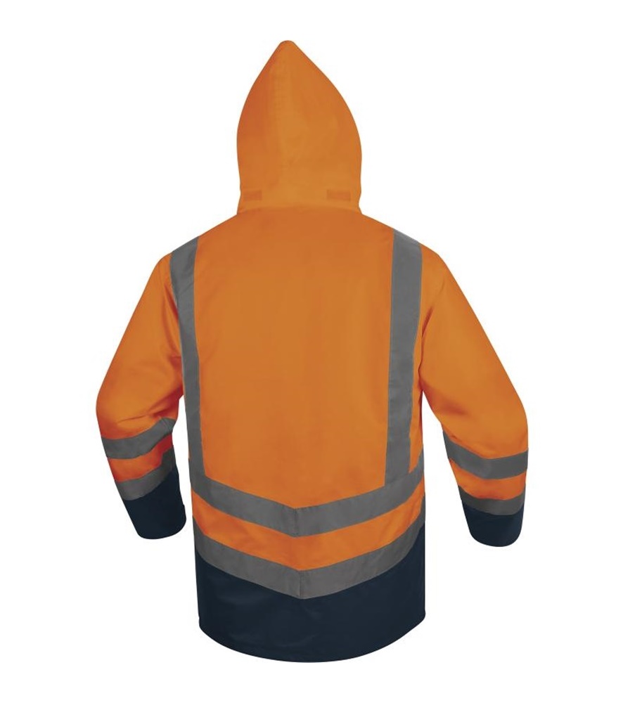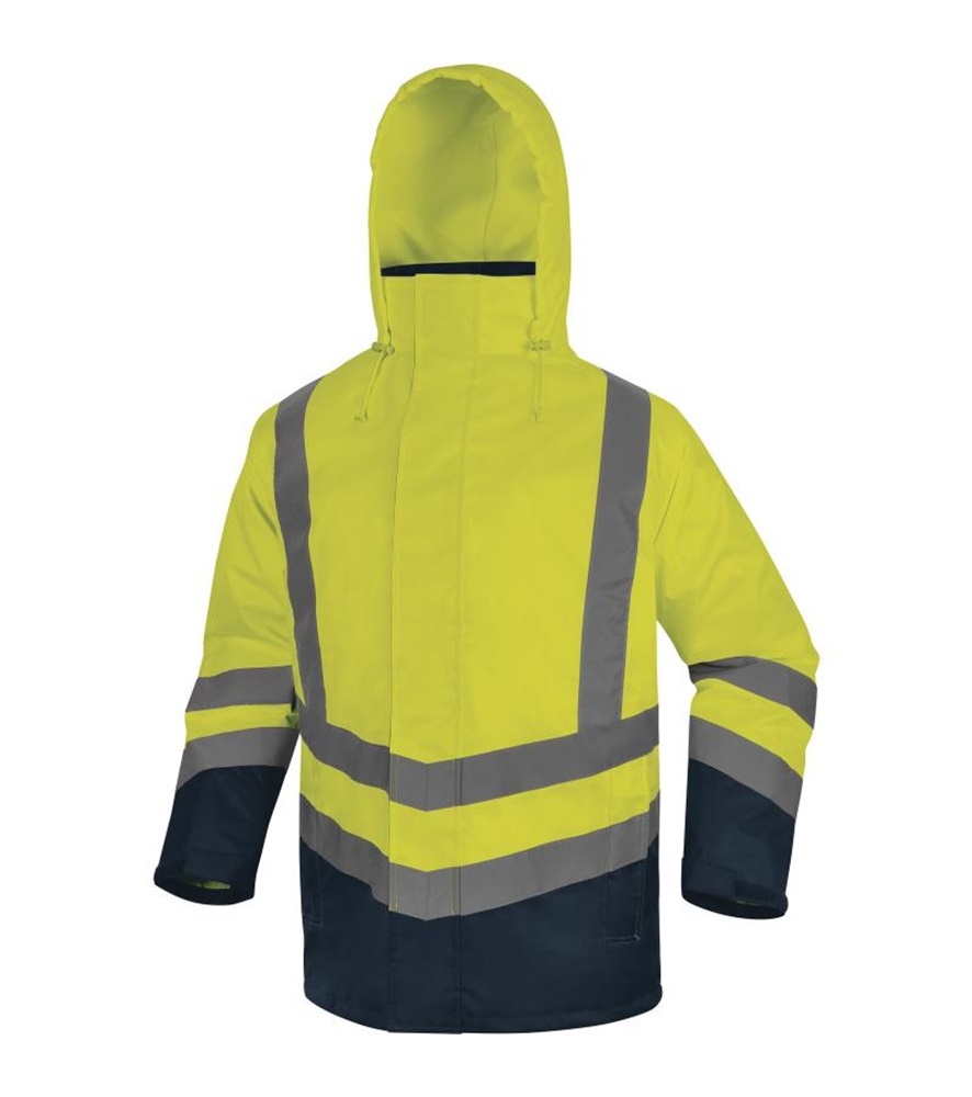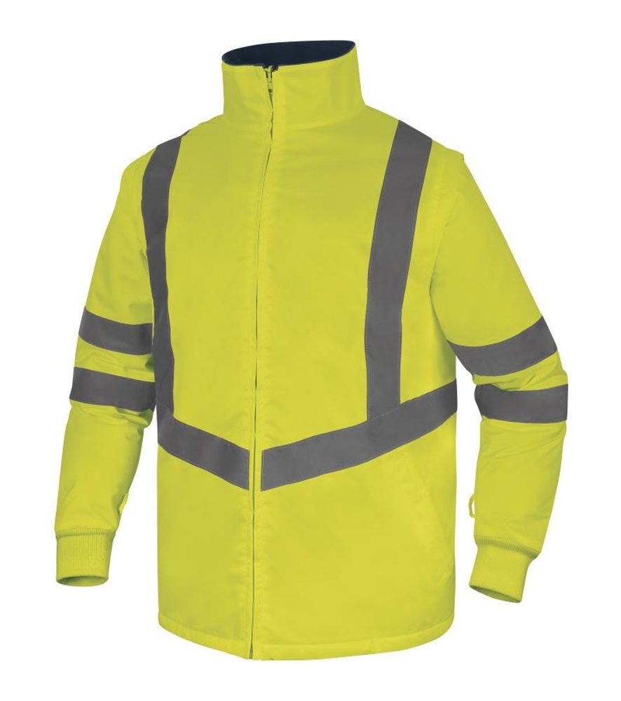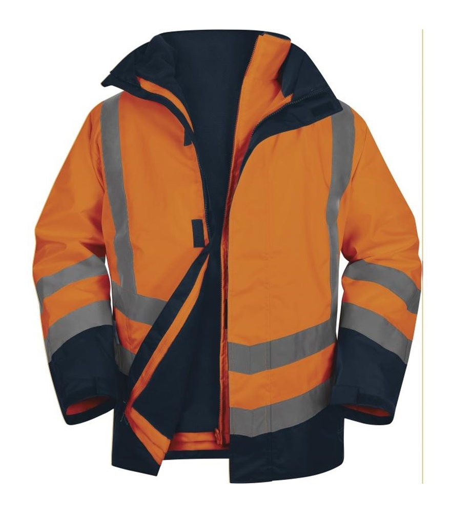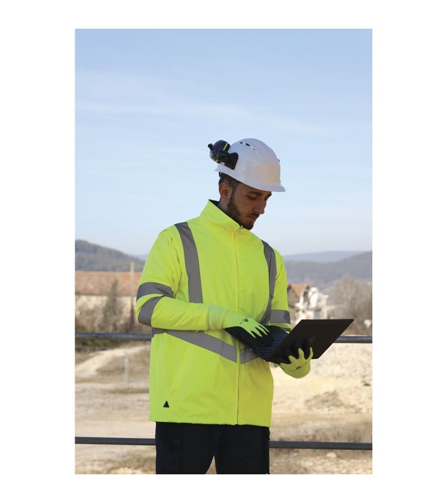 5 az 1-ben jelzőkabát, rávarrt kantár formájú és párhuzamos fényvisszaverő csíkozással. Jól láthatóság : 3. osztály. Hőszigetelő anyagösszetétele valódi védőbástyát nyújt a szélsőséges hideg ellen.