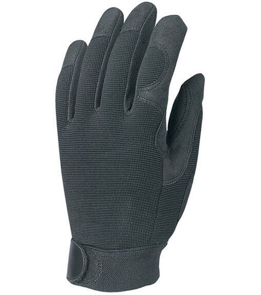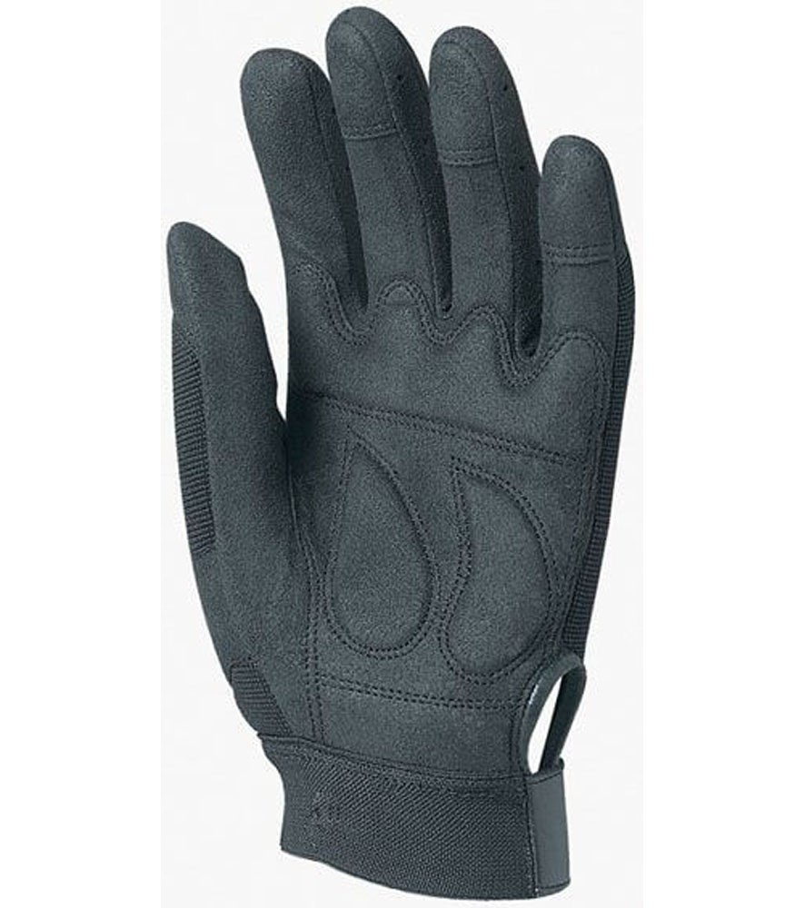Tartós textilbőrből készült, artéria- és körömvédő (előbbiek szivaccsal párnázottak) rugalmas fekete poliészter kézhát elasztikus mandzsetta, állítható tépőzáras szegéllyel, előnye a sertésbőrrel szemben, hogy víz hatására kevésbé hajlamos szakadásra méret: 9, 10-es EU szabvány: EN420, EN388: 3122