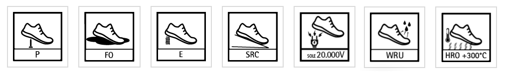 A talp ellenáll a vízbeszivárgásnak ISO 5423:92, a szénhidrogéneknek, a kopásnak, az ütődésnek és SRC csúszásmentes.