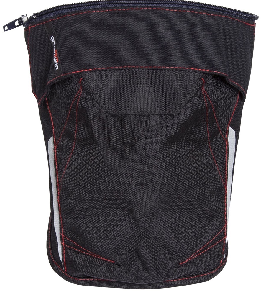- Hátul 2 tépőzáras külső zseb, hajtókával és füllel. A zsebszélek és a zsebfülek Cordurával erősítve; A jobb láthatóság érdekében fényvisszaverő felülettel