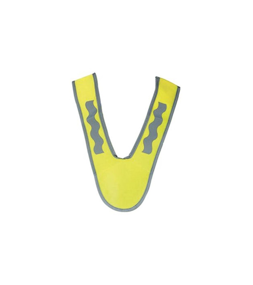 Gyerekek részére, sárga figyelmeztető vállpánt, ezüst fényvisszaverő csíkkal. 29cm.