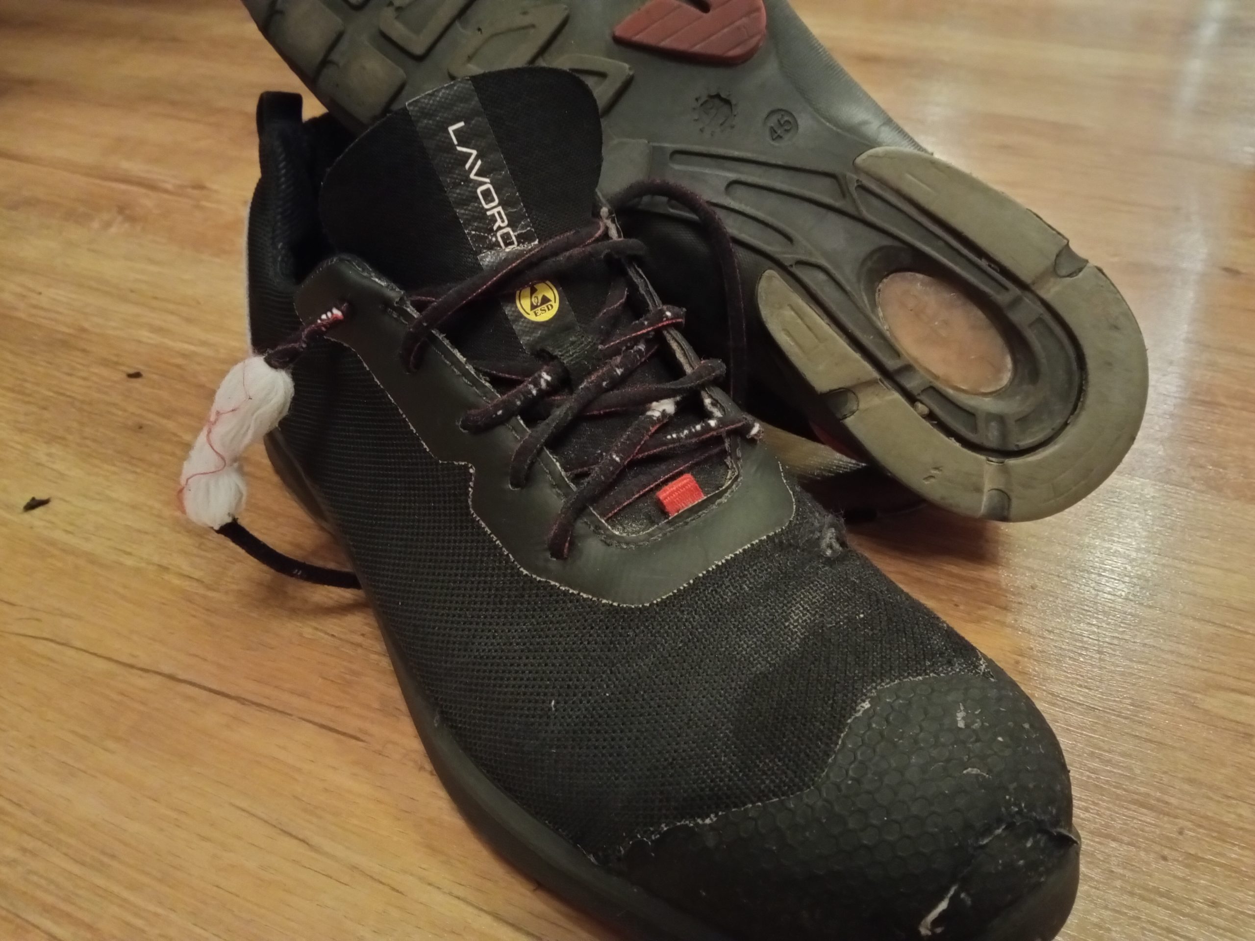 Amíg nem volt nagyon koszos, utcára is felvettem, mert annyira kényelmesnek találtam. Vezetni is lehet benne, de létrán is jó, egyenesen tartja a talpam. Mégis tényleg elég rugalmas és kényelmes, akár napi 8-10 órában is. Raklapot is tettek a lábamra, megvédett a cipő.