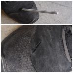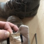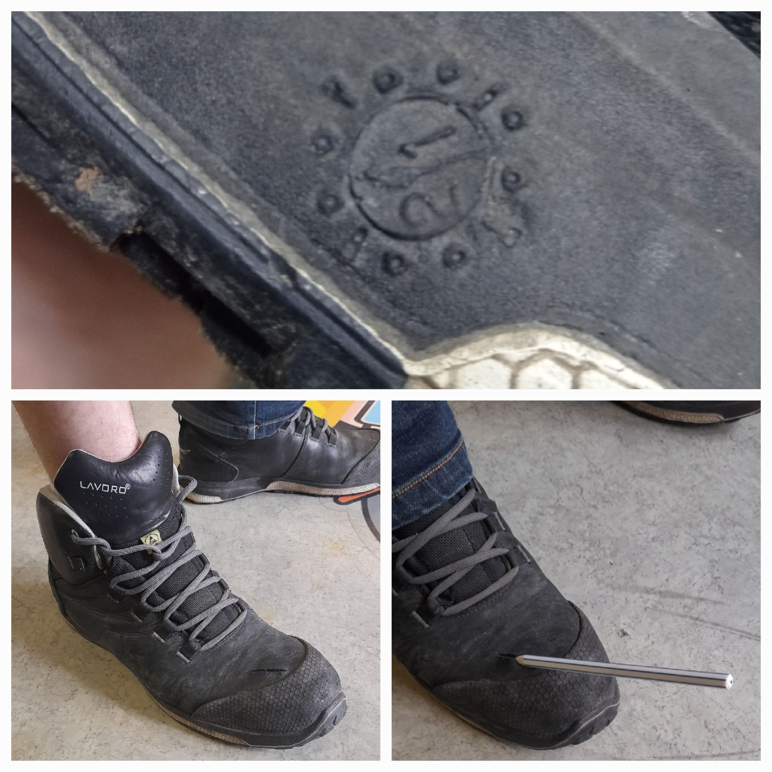 A Kenobi jobb lábas cipőjén látszik egy vágás, azt egy lemezajtó ejtette, a lábfejemet mentette meg a cipő! A vágásba egy ceruzát helyeztem a jól láthatóság érdekében.