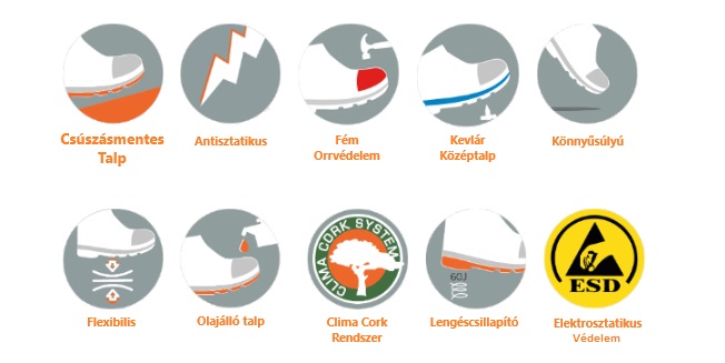 - Csúszásmentes/Olajálló talp, hogy minden körülmény között stabilan állj/sétálj munkád során