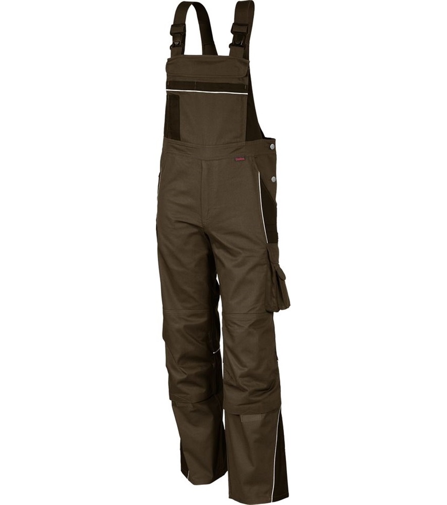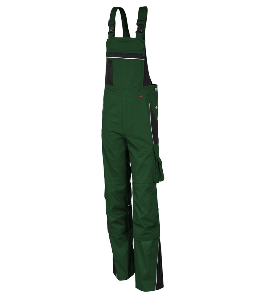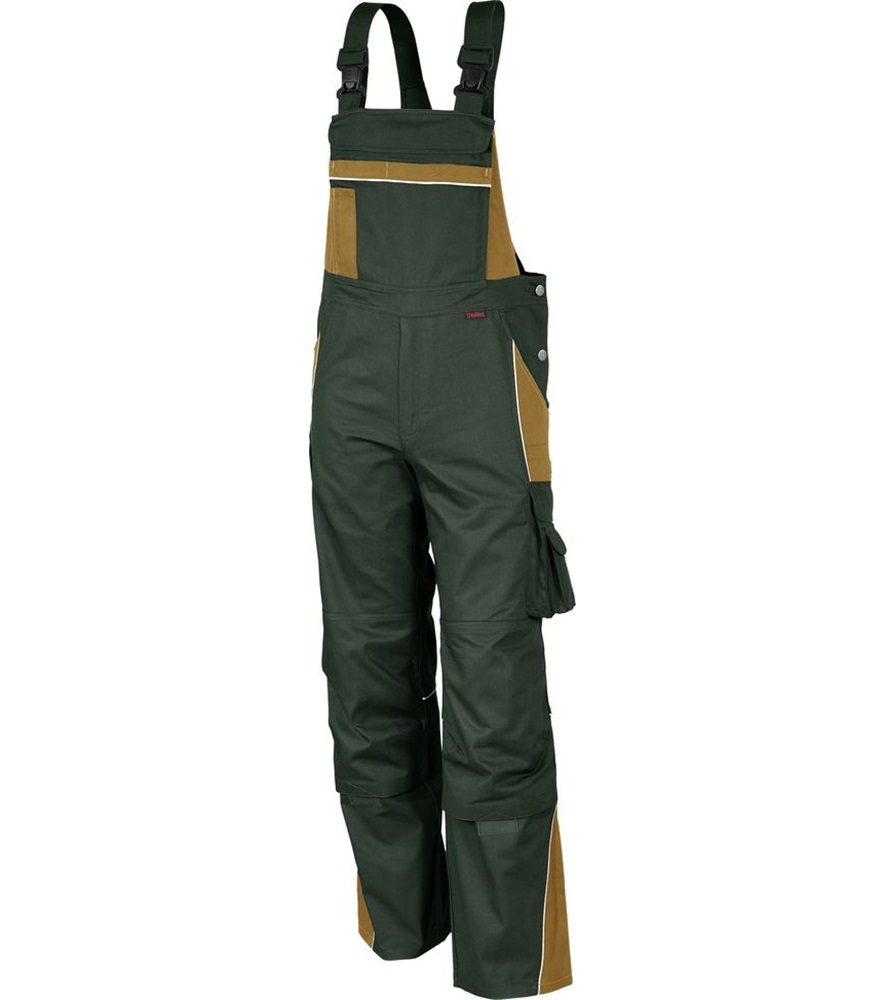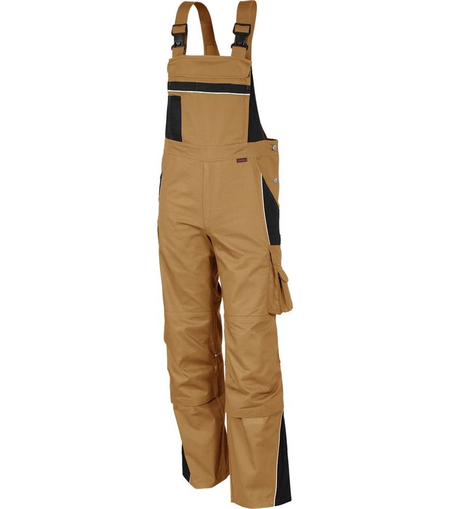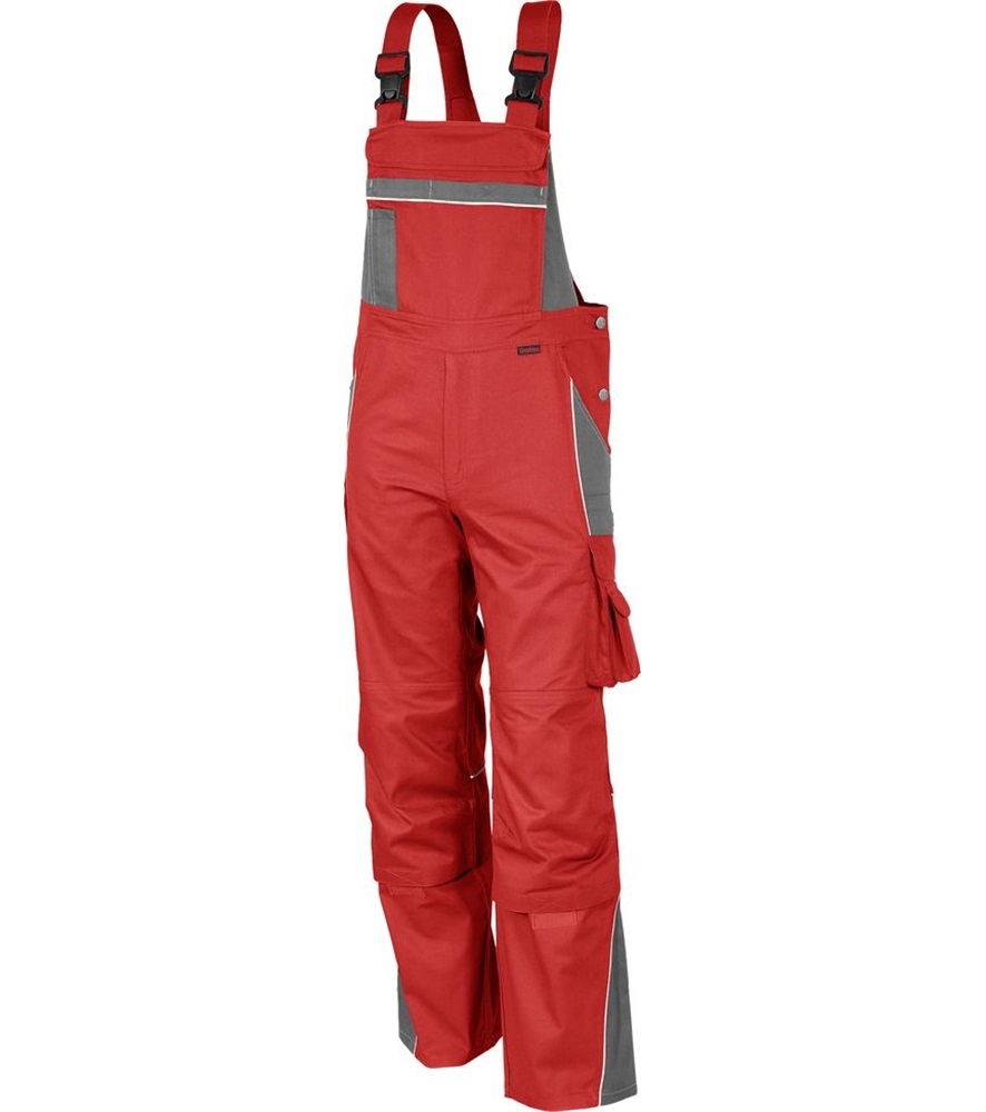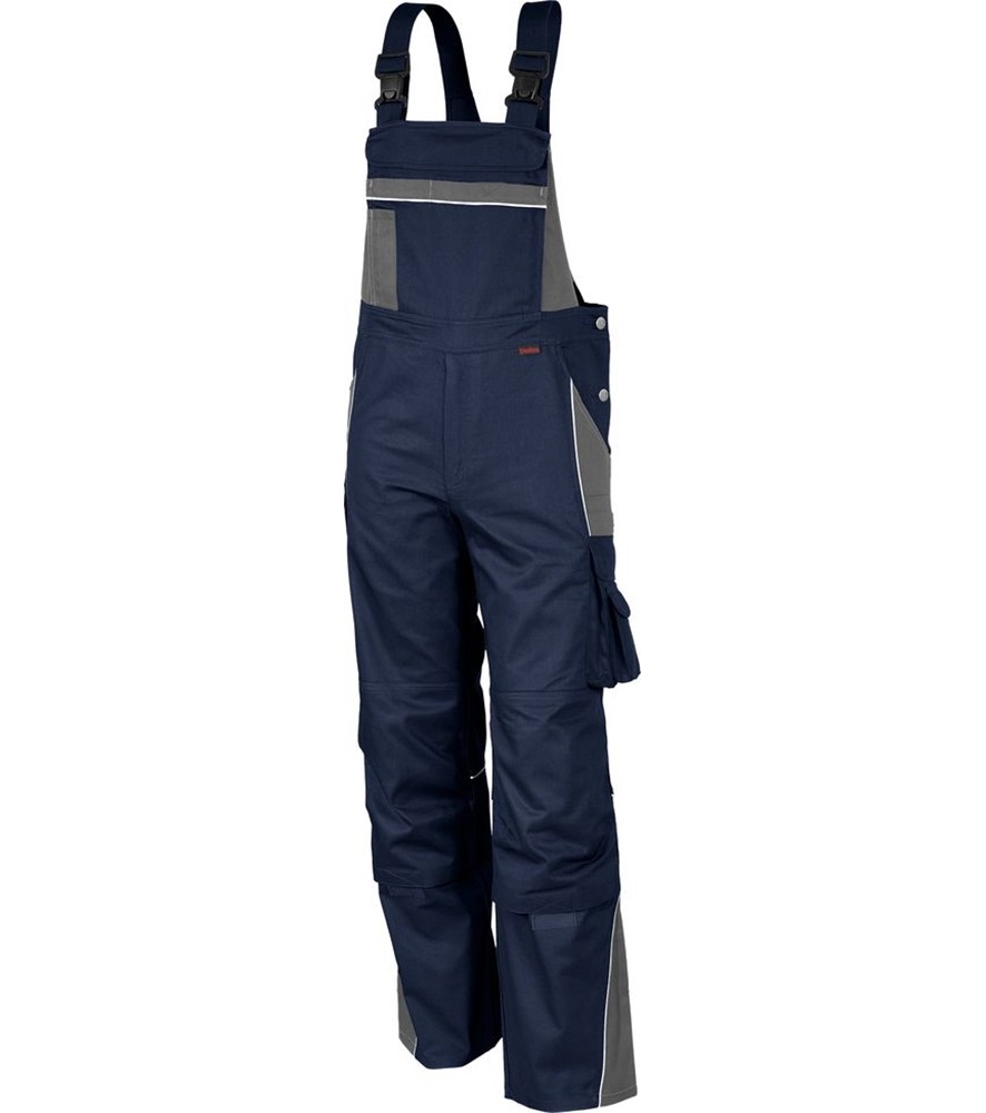 Derékrész 7 bújtató pánttal. Bedolgozott gumírozás a derékrész oldalain.Kalapácstartó. Slicc fém cipzárral. Előformázott térd és tépőzáras térdzseb. Elasztikus sztreccsbetét a térdzseb alatt. Jól láthatósági szegélyek az elülső kontrasztszínű részeken, a hátsó térdvarrásnál és a háton.