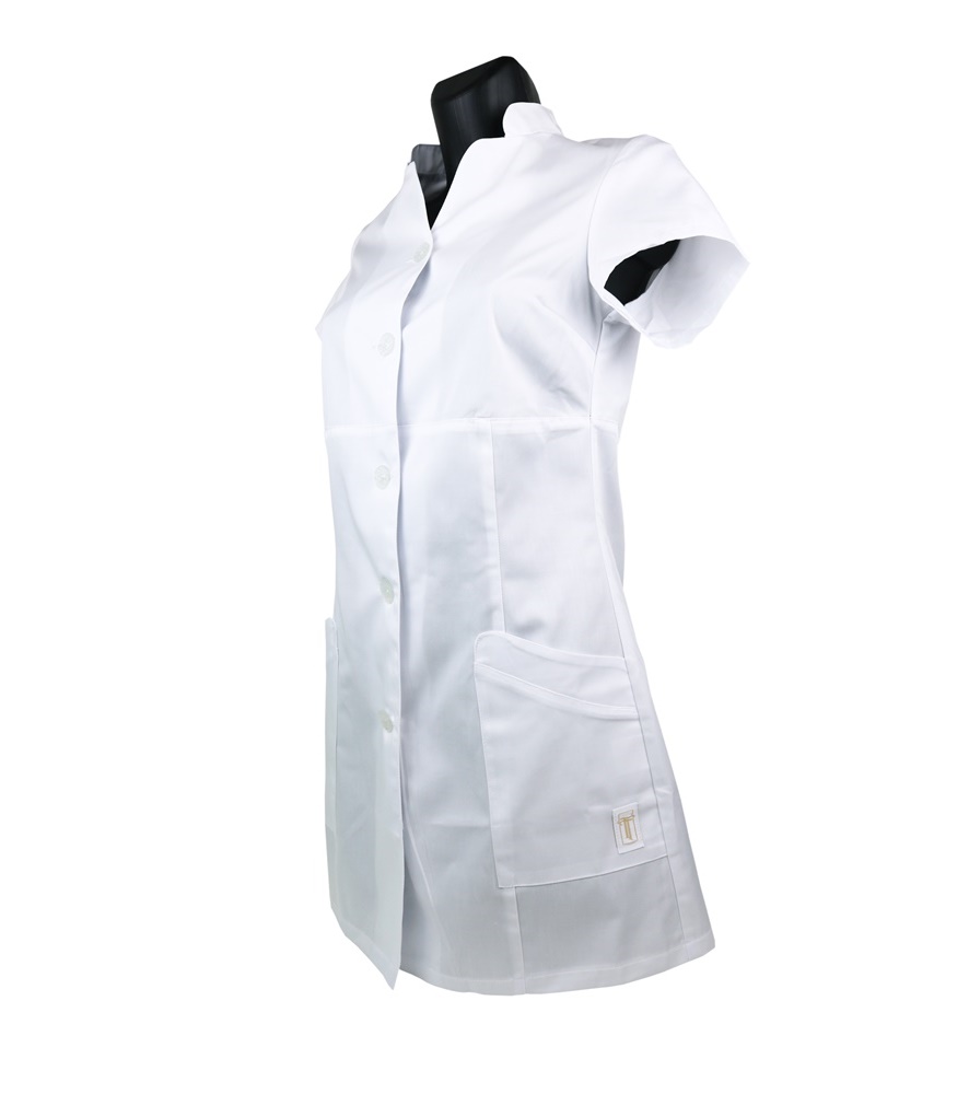 Címkék: egészségügyi ruházat, fehér női munkaruha, fehér tunika, női munkaruha, tunika