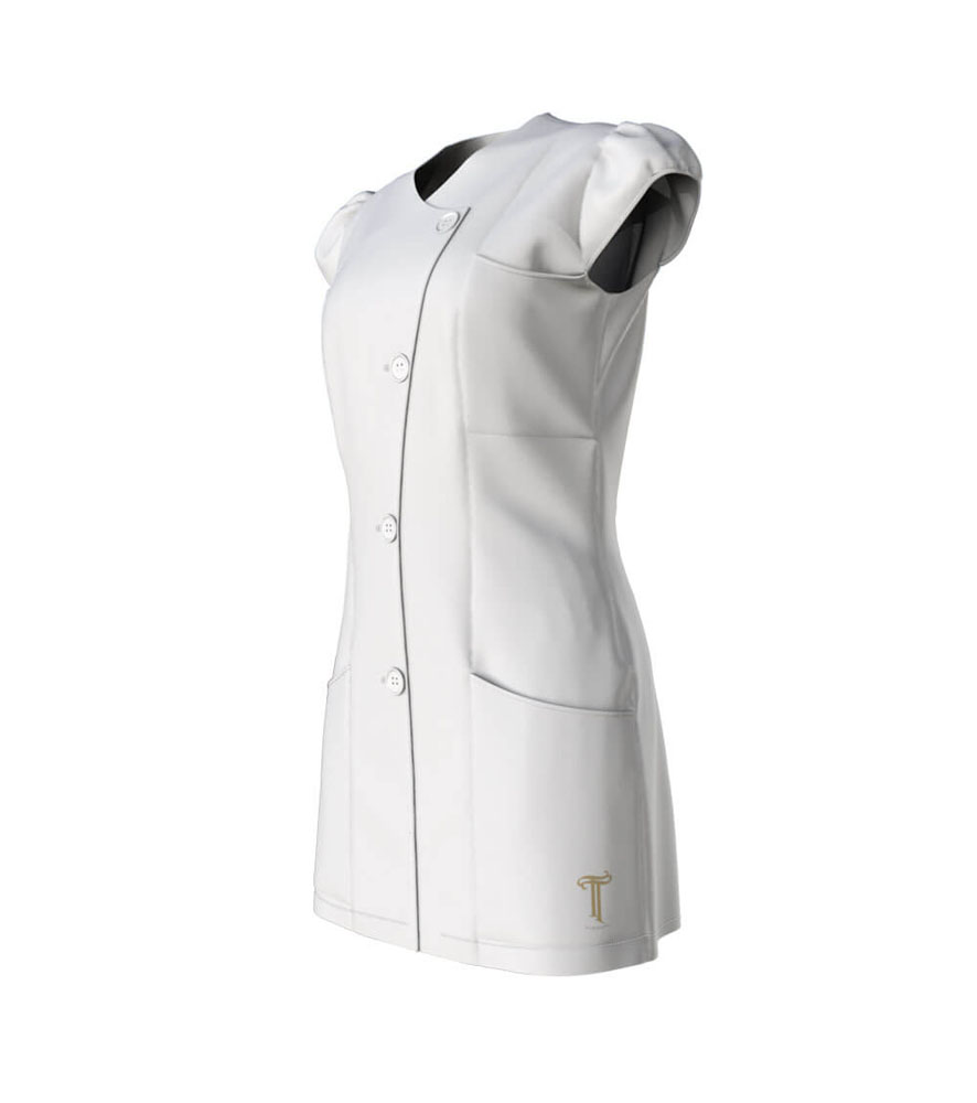 Fehér női egészségügyi tunika, mely 90 C° fon is mosható.