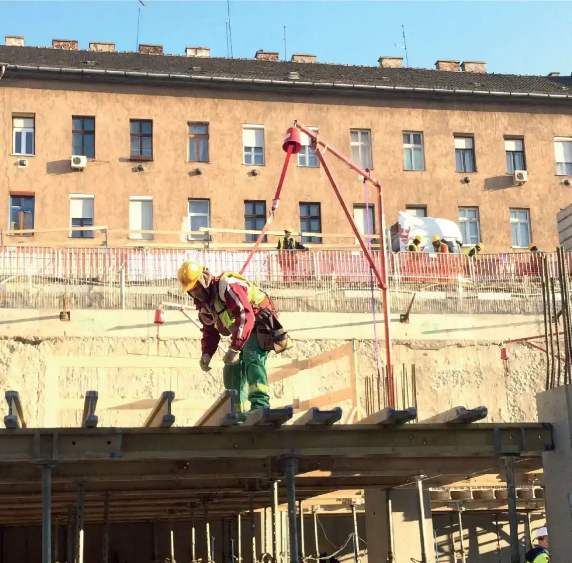 • Védi a felhasználókat a magasból való leeséstől, kiemelten javasoljuk a biztonságos munkavégzésérta szerkezetépítés fázisában (pl. panelek elhelyezése, kerületvédelem, lépcsőházak, felszállók, zsaluzat kiépítése, stb. esetén)