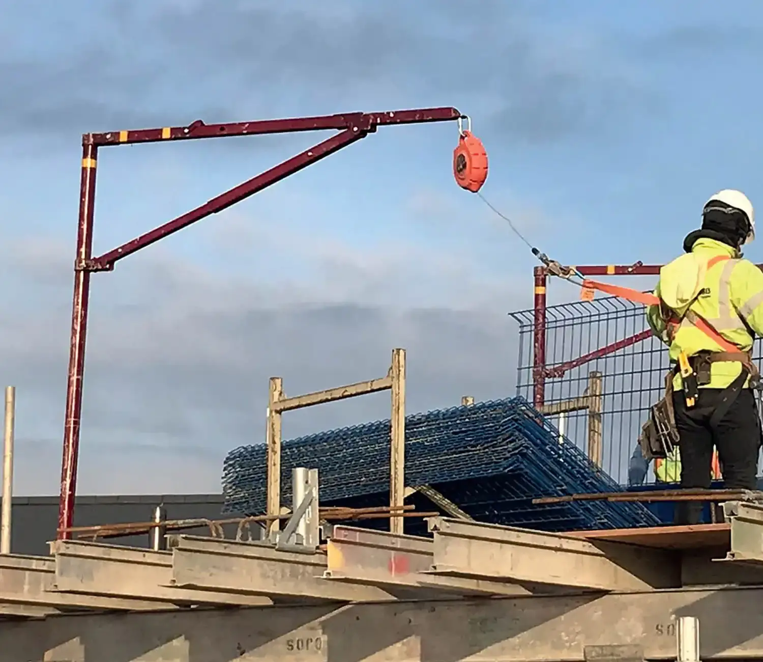 • Védi a felhasználókat a magasból való leeséstől, kiemelten javasoljuk a biztonságos munkavégzésért a szerkezetépítés fázisában (pl. panelek elhelyezése, kerületvédelem, lépcsőházak, felszállók, zsaluzat kiépítése, stb. esetén)